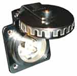 This is the replacement 30 amp inlet. It is a Hubbell marine grade stainless steel twist lock inlet. The extension cord locks into the inlet making it safer than your conventional RV inlet. Another nice feature of the Hubbell is the water tight cover which screws in place to protect the prongs and keep water out of the panel. |