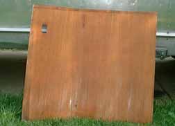 panel was removed, varnish striped sanded and replaced. A lot of scratches