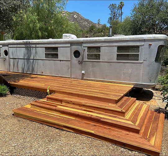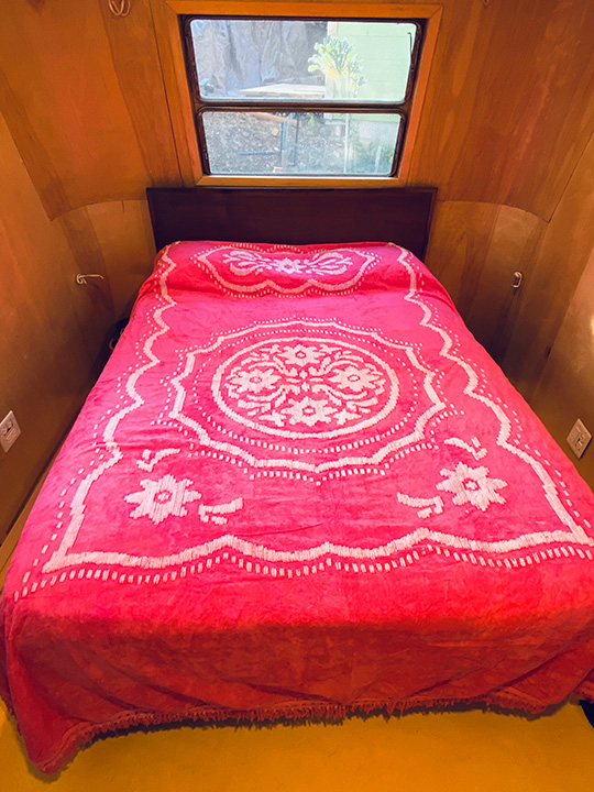 info: completely rebuilt Spartan Imperial Mansion, with entirely new plumbing, electrical, denim insulation, birch paneling, custom cabinetry, sunshine yellow Marmoleum floors, new refrigerator and gas range oven (15k BTU), new air conditioning unit and a gorgeous Cubic Mini brand wood-burning stove. Accented throughout with authentic mid-century modern design elements, this 43 foot beauty is ready to become a full time living situation, short-term rental, or guest suite. Original bathroom area was converted to a walk-in closet, but can be reverted back to a bathroom with ease.