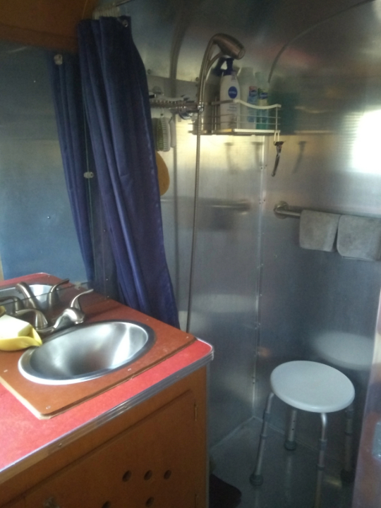 - Full bathroom with 32"X32" aluminum shower stall and porcelain bowl toilet